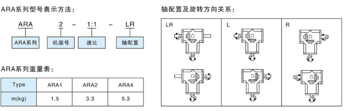 特點:"" 1,小型、全方位安裝、重量輕、鋁合金殼體,"" 2,出入軸可選不銹鋼材料,"" 3,速比:1:1 和2:1兩種,有ARA1 1.5KG ARA2 3.3KG ARA3 5.3KG ""