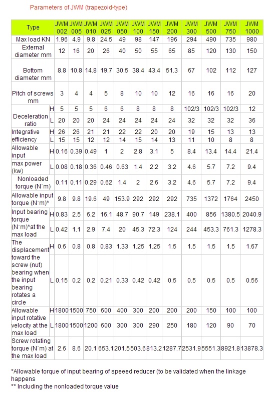 JWM type (trapezoidal screw type)