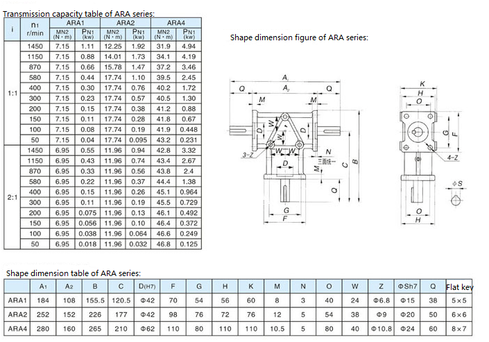 Non-standard requirements for ARA series small spiral bevel gear units are as follows: